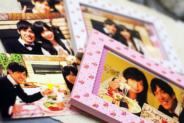 楽しくいろんなバージョンのお写真を思い出に撮るのもいいし、恥ずかしがり屋さんでしたら記念に1枚、シンプルなL版サイズのフォトフレームに入れてお持ち帰りいただきます。